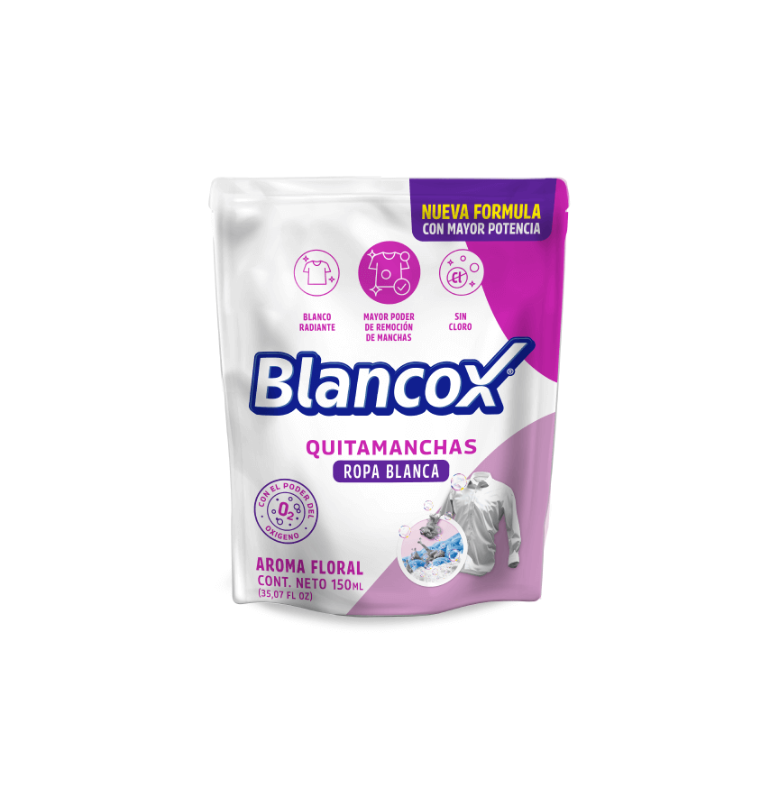 Quitamanchas ropa blanca 150ml Máxima potencia en remoción de manchas, cuida la ropa y protege los colores. Ver producto
